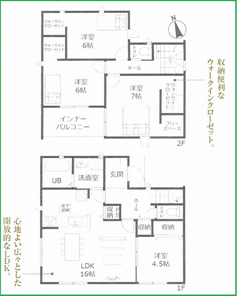 | 間取内容 | LDK16.2畳 1階 1室 洋室3.7畳 1階 1室 洋室5.7畳 2階 2室 洋室7畳 2階 1室 | ||